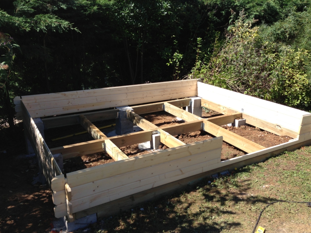 Réalisation d’un abri de jardin en pin d’europe centrale.