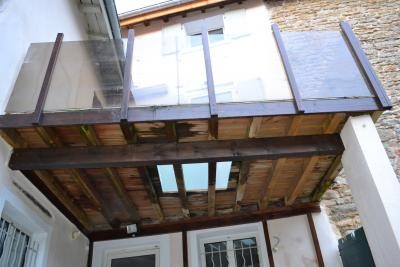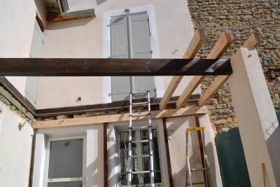 Réfection complète d’un balcon. La structure a été remplacée à l’identique, et habillée de lames de terrasse en bois exotique Yellow Balau. Un garde-corps en fer forgé simple et épuré, s’intègre parfaitement sur le balcon. Le mélange des matériaux, bois, fer et pierre, apporte une touche esthétique supplémentaire à l’ouvrage.