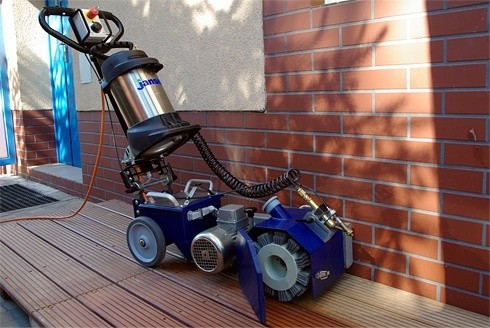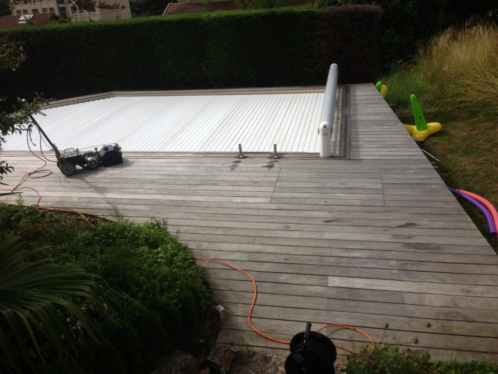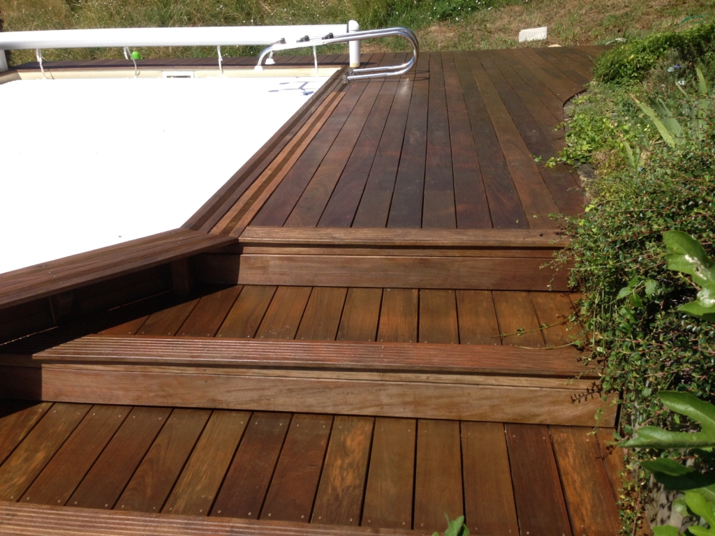 Restauration d’une terrasse grisée par le temps. Nous utilisons une machine spécifiquement développée, équipée de brosses à enduction au carbure de silicium, qui réalisent un brossage intensif du bois, sans en altérer le grain et la structure (les fibres). Le réglage de la vitesse de rotation ainsi que celui de la pression de la brosse, permet un travail sur tous types d’essences.