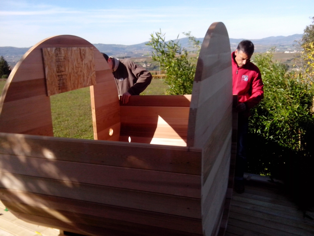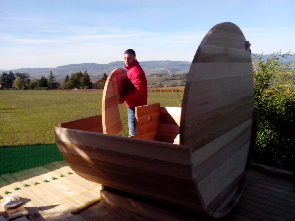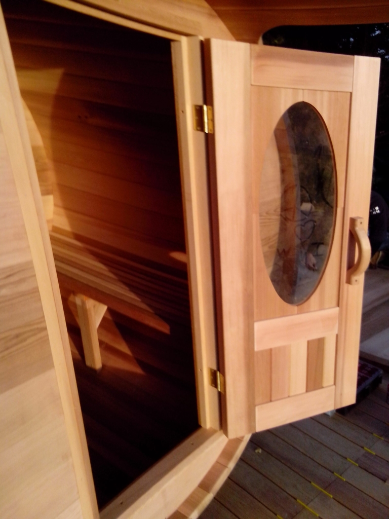 Sauna barrique en bois massif à l’aspect unique en RED CEDAR, essence de bois qui résiste aux intempéries, au froid, au gel, à la neige, et qui ne demande aucun traitement spécifique. Dans une ambiance parfumée aux arômes naturels du RED CEDAR, ce sauna vous aidera à chasser le stress, évacuer la fatigue et vous redonnera du tonus grâce à son action sédative !