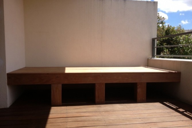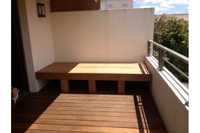 BAIN DE SOLEIL EN IPÉ À DARDILLY (RHÔNE) Réalisation d’un bain de soleil sur mesure sur un balcon à Dardilly, en bois exotique (Ipé).