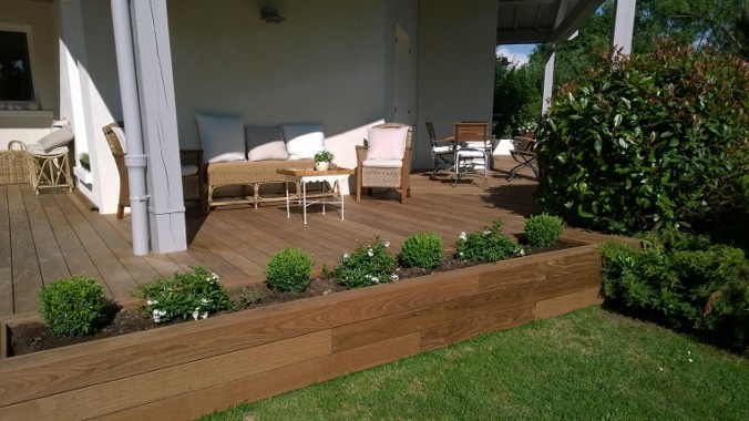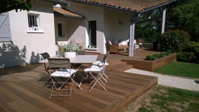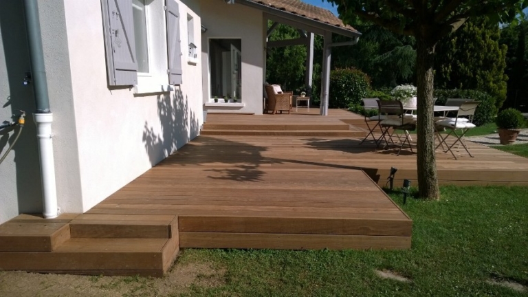 Au sein d’une belle propriété à DARDILLY, réalisation d’une terrasse en bois exotique Ipé sur plusieurs niveaux, avec une jardinière intégrée. Des spots ont été encastrés afin de profiter au maximum de la terrasse pendant les longues soirées d’été…